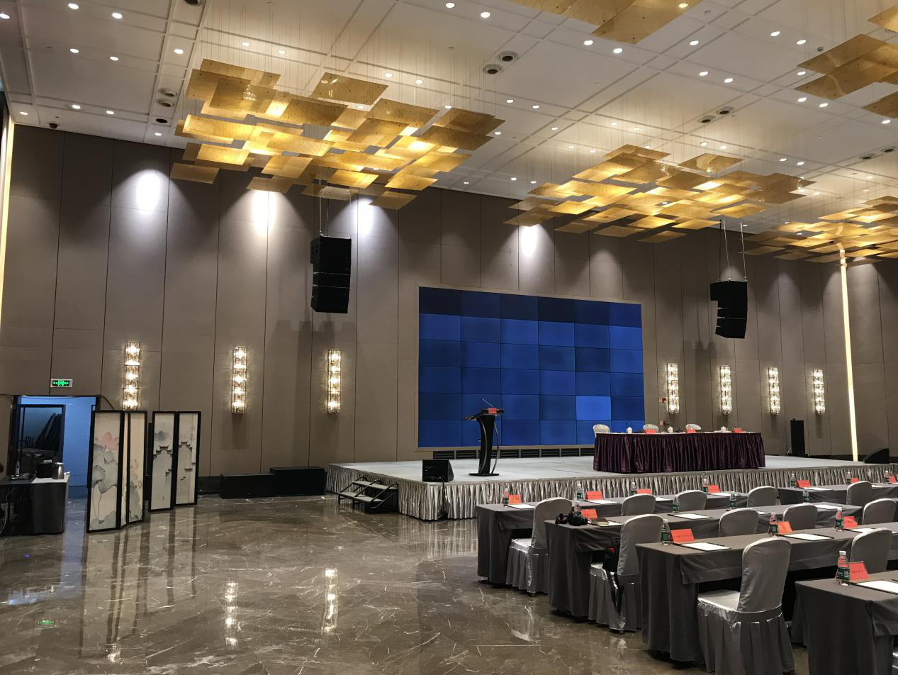 酒店牡丹廳為729平米,高8米無(wú)柱宴會(huì)廳,配置了雙十寸線陣列音箱,與演出級(jí)別專業(yè)功放、搭配英國(guó)品牌Studiomaster的Digileve系列前級(jí)處理系統(tǒng),組成一套完美音效、人聲表現(xiàn)突出的高端擴(kuò)聲系統(tǒng)。工程達(dá)到極高標(biāo)準(zhǔn),為酒店搭建起一套設(shè)備先進(jìn)、性能穩(wěn)定可靠專業(yè)擴(kuò)聲系統(tǒng),得到使用方的一致好評(píng)!