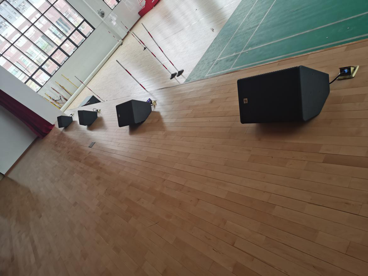 該擴(kuò)聲系統(tǒng)設(shè)計(jì)功能明確,以BAIANGDE TZ系列線陣為主擴(kuò)聲音箱,舞臺(tái)上方左右各4只TZ-210,搭配2只TZ-218S超低頻音箱使用,超低頻音箱擺放在舞臺(tái)前方左右兩側(cè),考慮到體育館深度的問題,為了保證聲音的均勻度,后場(chǎng)采用6只MT-12作為補(bǔ)聲音箱,每邊三只。整個(gè)擴(kuò)聲系統(tǒng)為觀眾帶來一個(gè)音質(zhì)真實(shí)、中高低頻層次豐富,動(dòng)態(tài)飽滿的擴(kuò)聲效果。 由于學(xué)校經(jīng)常有演出,考慮到表演人員能及時(shí)獲取現(xiàn)場(chǎng)演出效果而做出更好的調(diào)整和發(fā)揮,舞臺(tái)上則采用了4只MC-12作為返聽音箱,整體擴(kuò)聲充分考慮各區(qū)音質(zhì)效果,為觀眾建立了一個(gè)音質(zhì)真實(shí)清晰,動(dòng)態(tài)充沛有力的聽覺環(huán)境。
